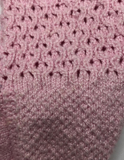 Beginning of round – Work 43 stitches in eyelet rib starting with round 1.